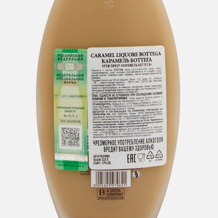 Ликер Боттега Карамель крем 17% ст/б 0,5л