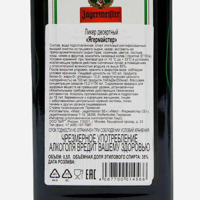 Ликер Ягермайстер десерт 35% ст/б 0,5л