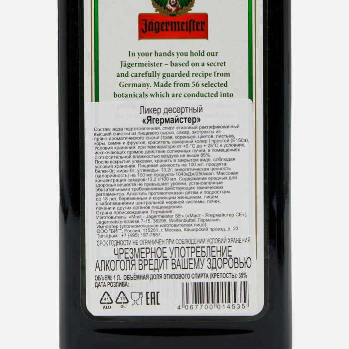 Ликер Ягермайстер десертный 35% ст/б 1л