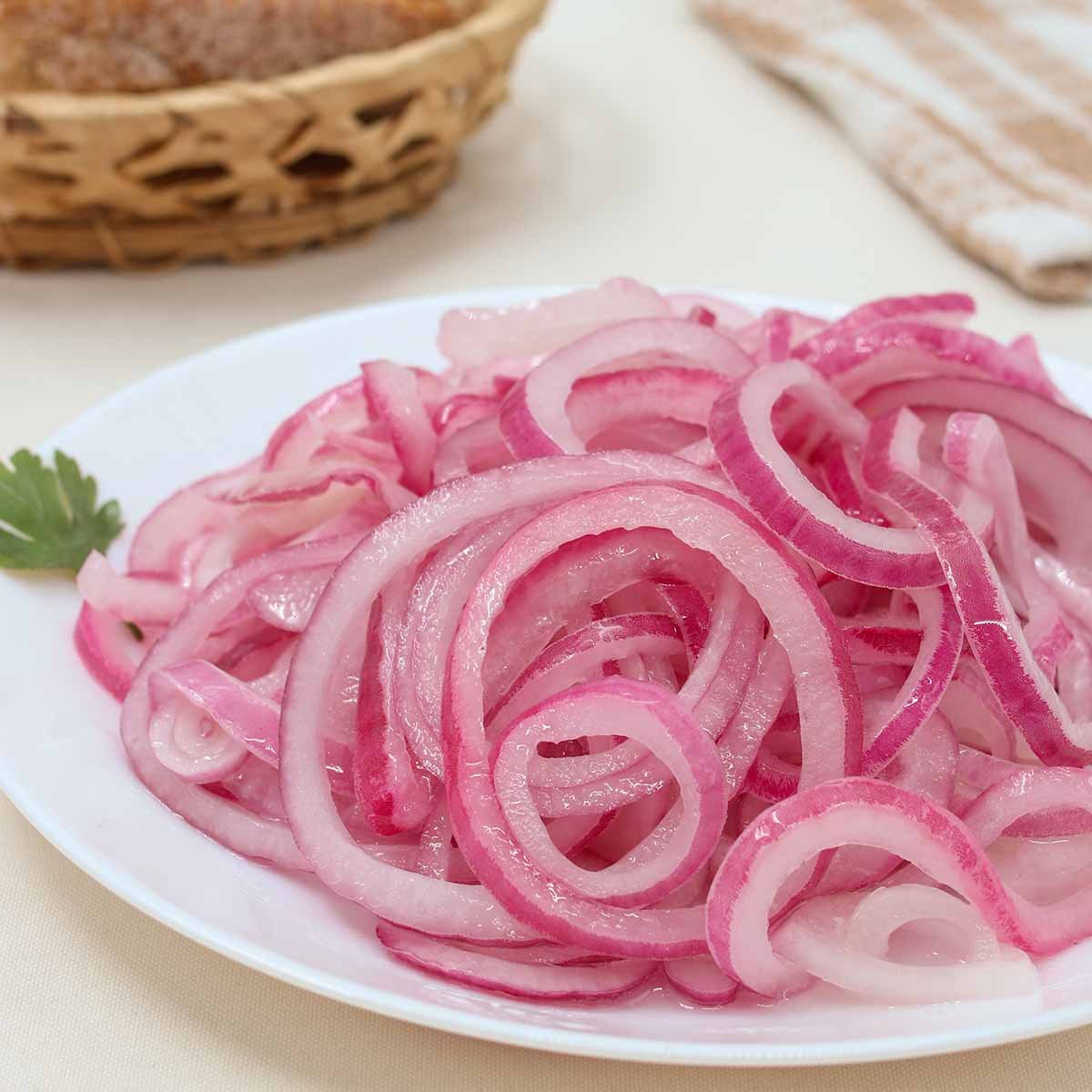 Пикантная острая закуска со сладковатым привкусом сочного красного лука.