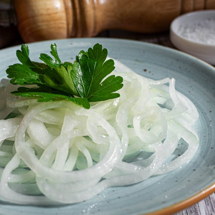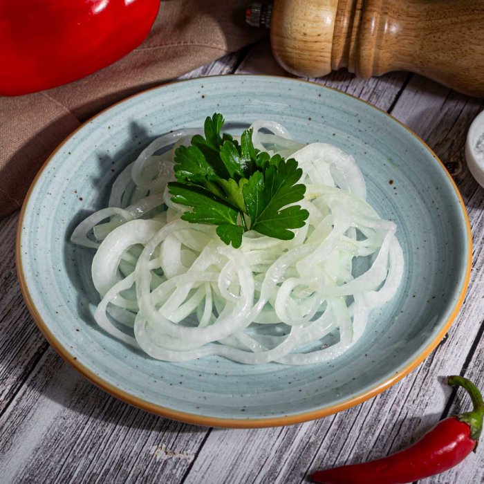 Лук маринованный — это пикантный акцент для Вашего гурманского стола. Лук репчатый, хрустящий и сочный, оживает в маринаде из уксуса столового, сахара-песка и соли поваренной пищевой. Подсолнечное масло добавляет шелковистую мягкость, усиливая сладковато-острый вкус. Этот деликатес идеален к мясу, рыбе или в салатах, даря яркость каждому блюду. С доставкой свежесть прибудет к Вам, чтобы Вы наслаждались премиальным качеством. Погрузитесь в гастрономию, где лук раскрывает свою утончённую натуру!