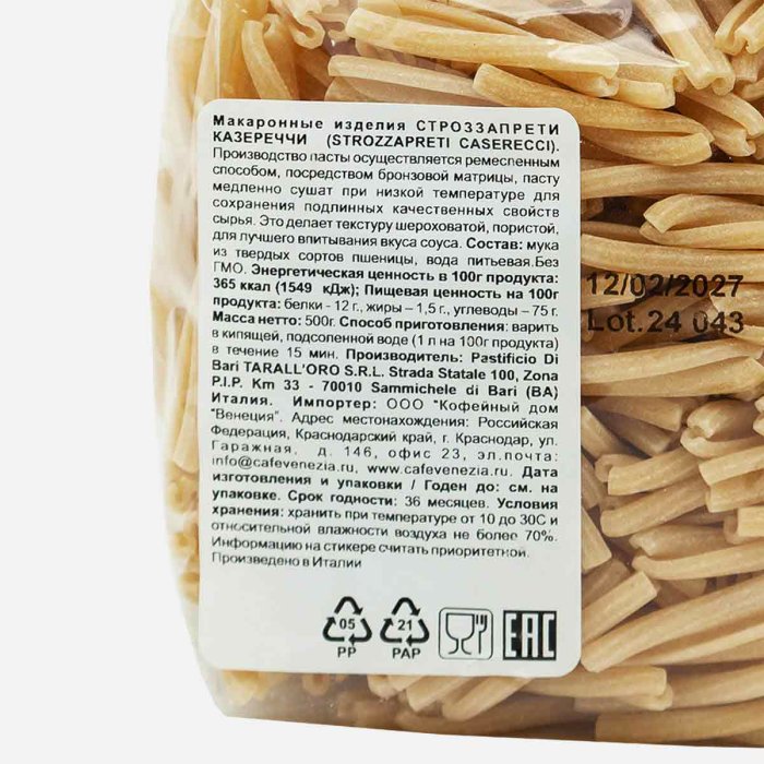 Мак. изд. Ди Бари Строззапрети Казаречче 500г
