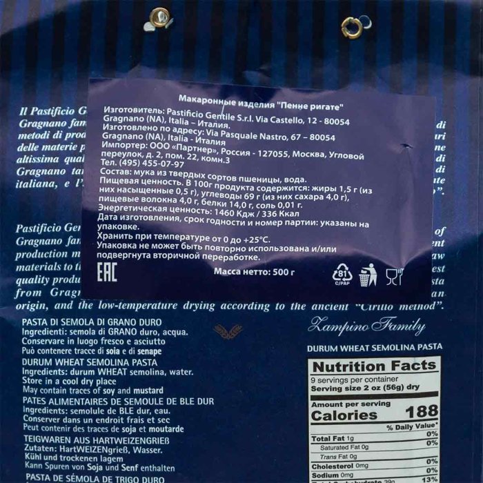 Мак. изд. Джентиле Пенне Ригате пл/пак 500г