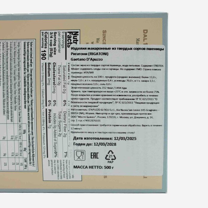 Мак. изд. Гаэтано Д'Апуццо Ригатони к/к 500г