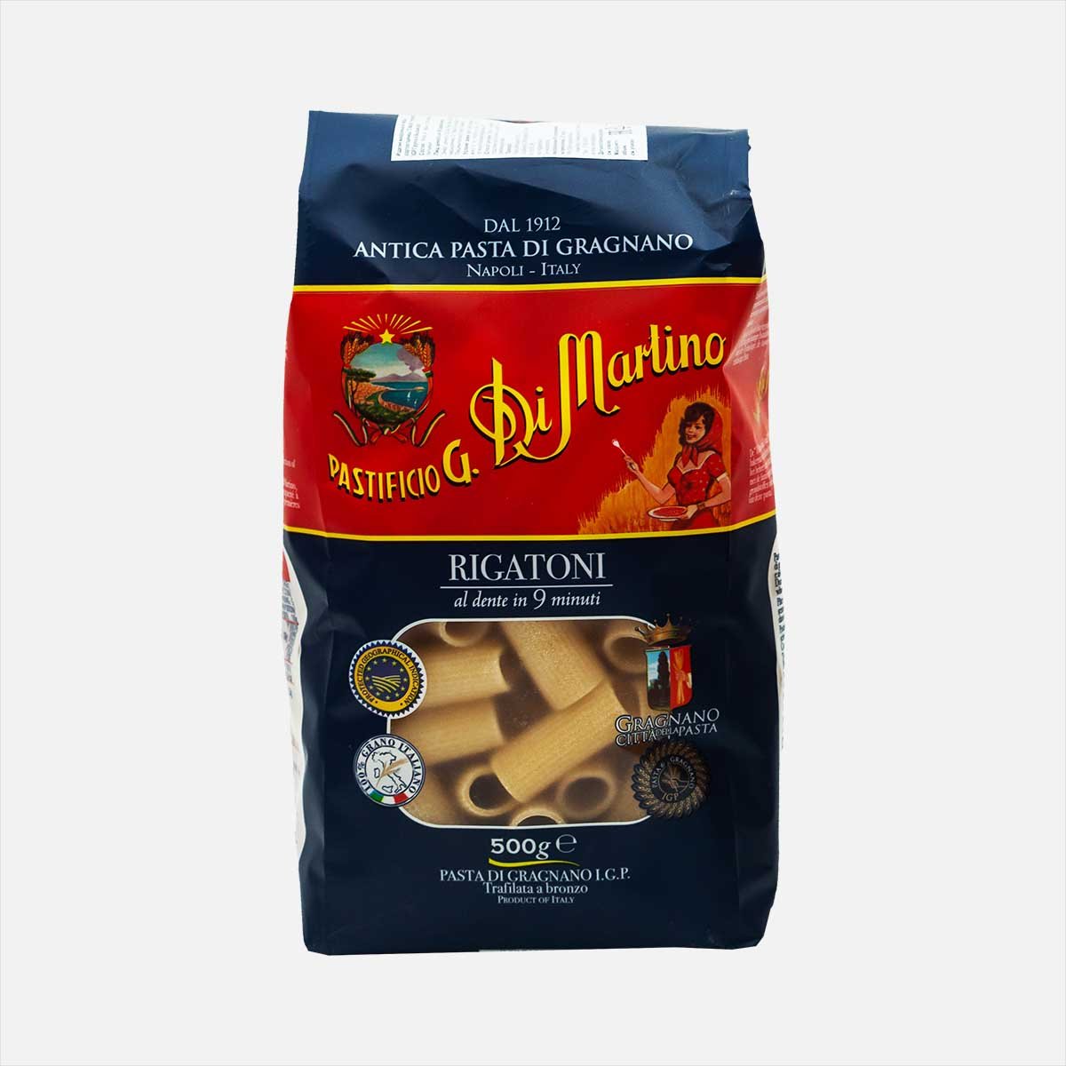 Короткие, рифленые трубочки от крупнейшего производителя макаронных изделий в мире. На юге Италии, особенно на Сицилии, ригатони — настоящая звезда кухни, которую можно встретить во многих традиционных блюдах. Например, «алла норма» (паста с баклажанами, томатом и базиликом), получившее название в честь оперы Беллини.