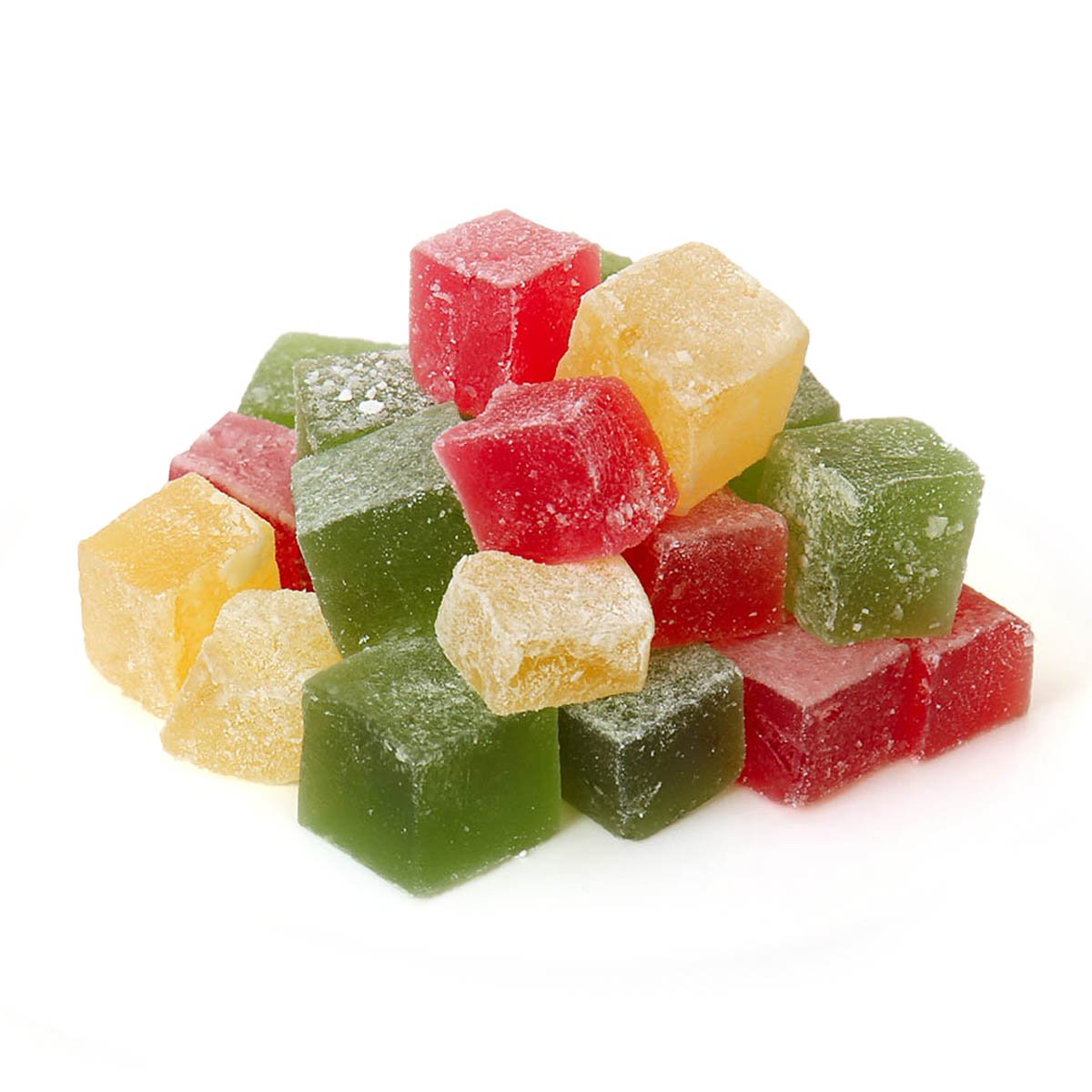 Сахар, сахарная пудра, пектин, лимонная кислота, ароматизатор, натуральные красители бета-каротин, натуральные красители хлорфиллин, карминовая кислота.