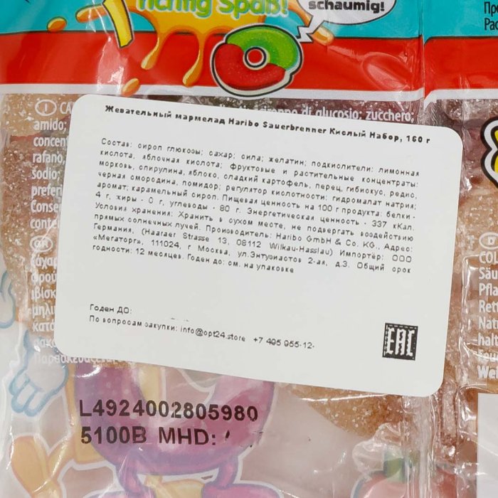Мармелад Харибо Кислый набор 160г