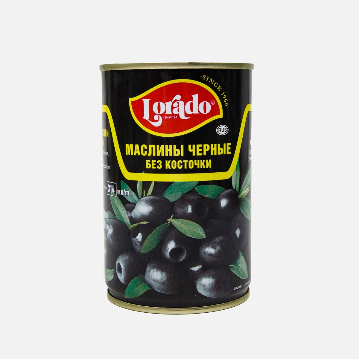 Маслины Лорадо чёрные б/к ж/б 314мл