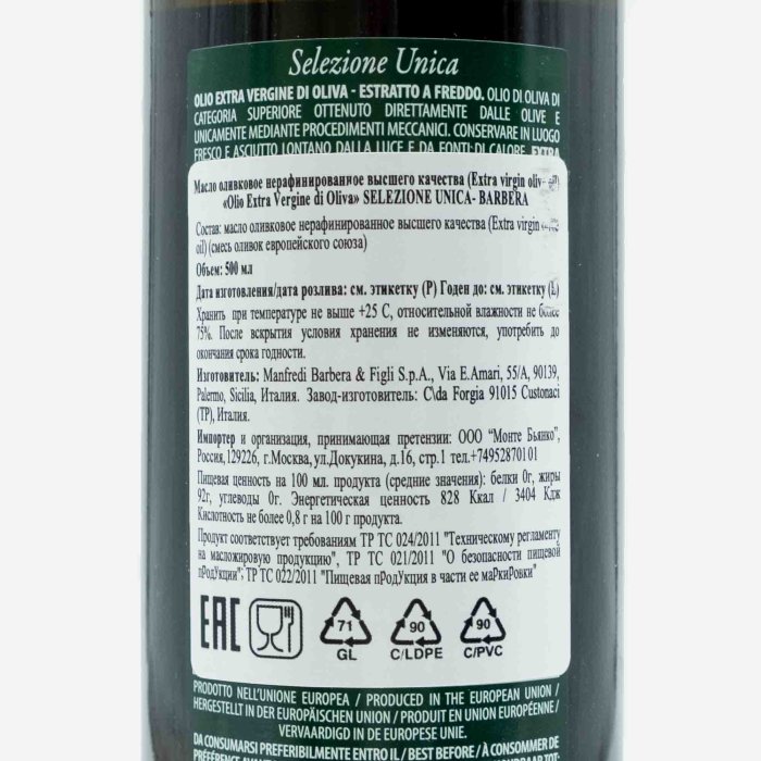 Масло Барбера оливковое Селеционе Уника Экстра Вирджин ст/б 500мл