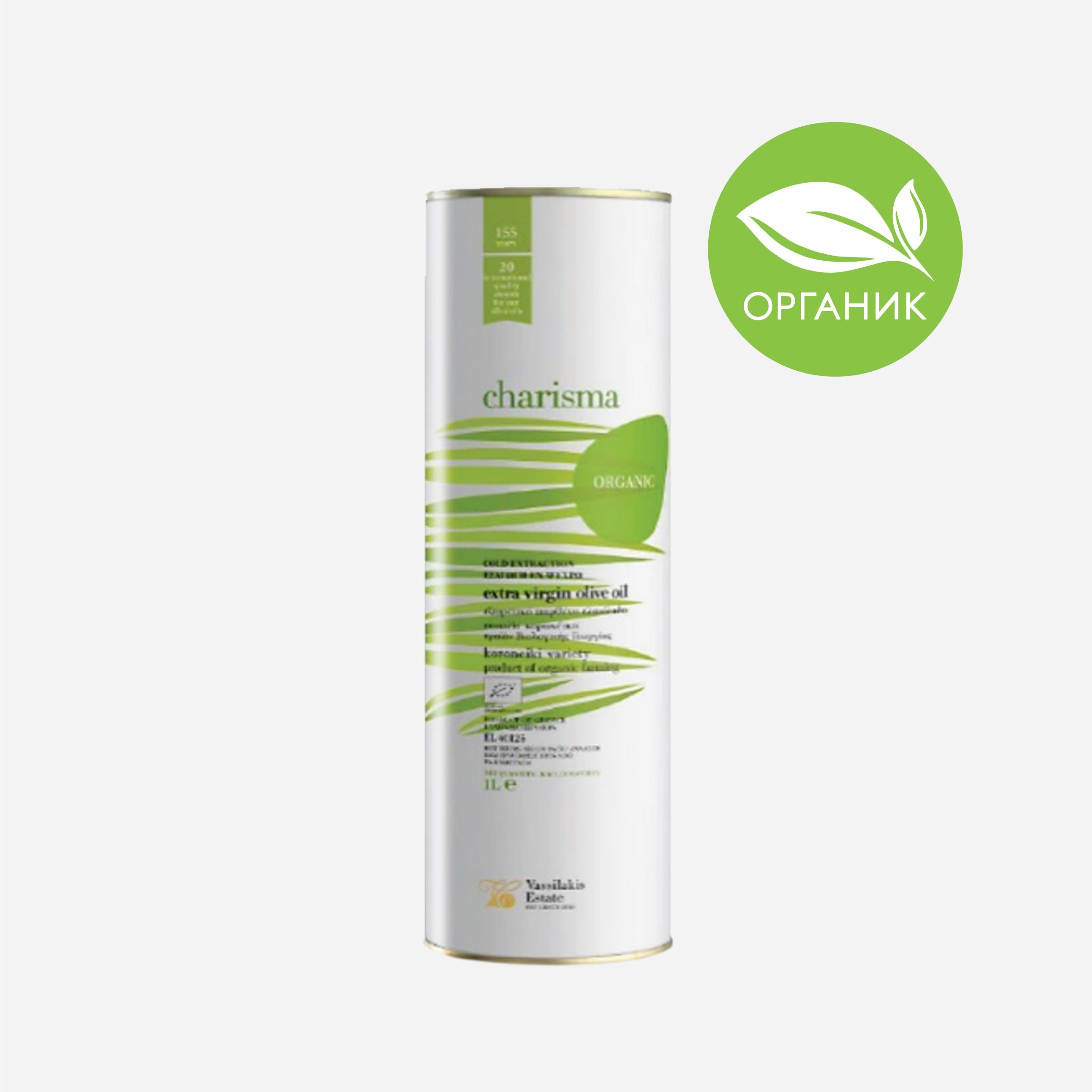 Масло Вассилакис оливковое Чаризма Органик ЭВ от 0,4 до 0,5% ж/б 1л