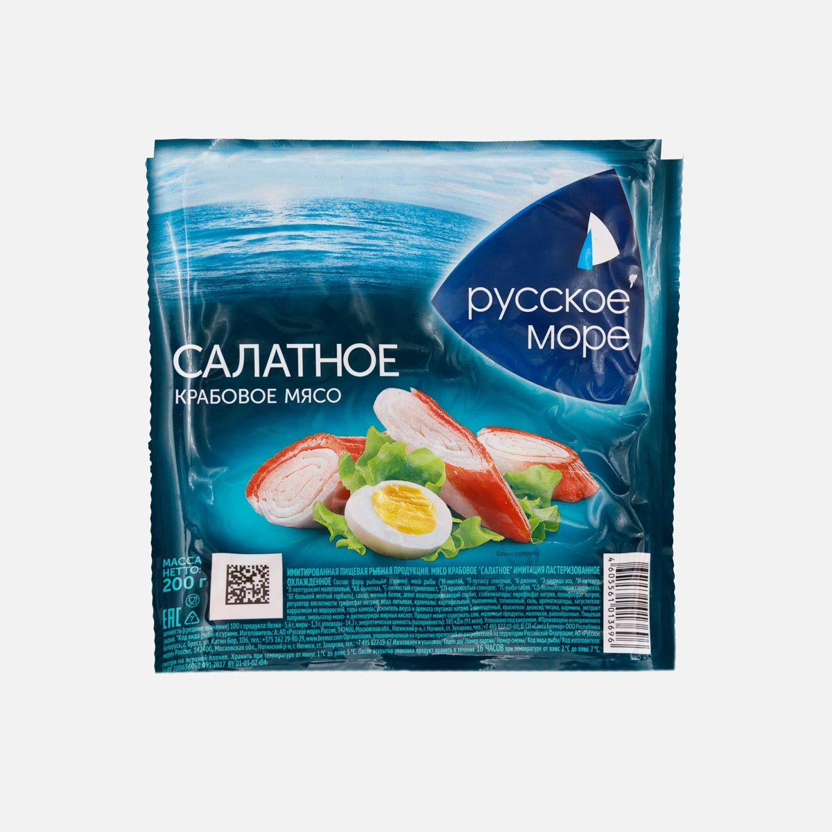 Мясо крабовое Русское море Салатное имитир охлажденное в/у 200г