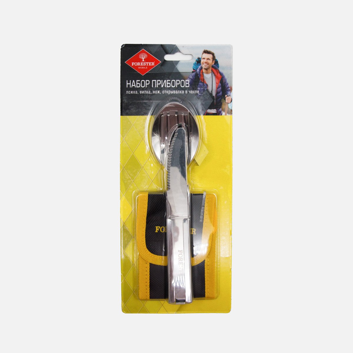 Набор Форестер Мобайл ложка/вилка/ нож открывалка16-18см в чехле стал