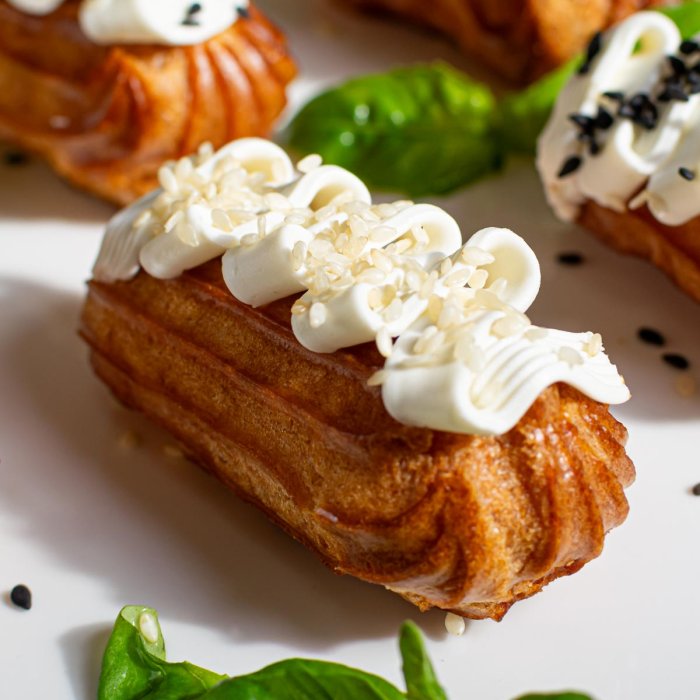 Французские воздушные эклеры с начинкой из печени трески, творожного сыра и вареных яиц. Настоящий интернациональный хит!