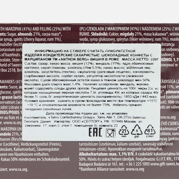 Набор конфет Антон Берг Марципан Вишня 220г
