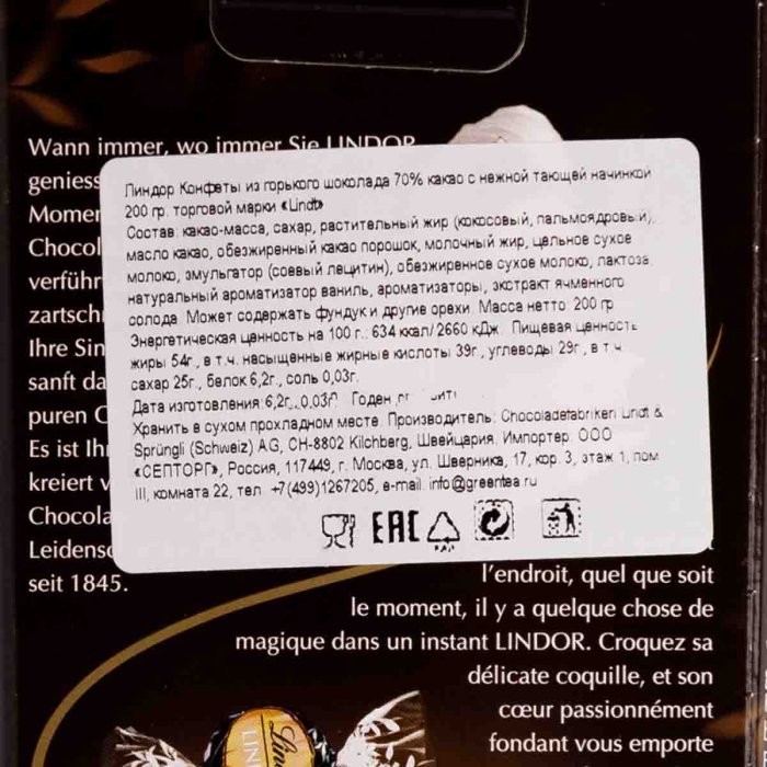 Набор конфет Линдт Линдор 70% 200г