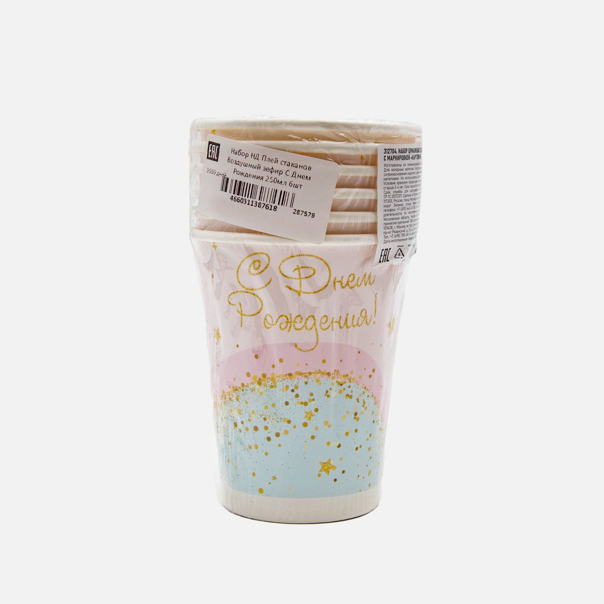 Набор НД Плей стаканов Воздушный зефир С Днем Рождения 250мл 6шт