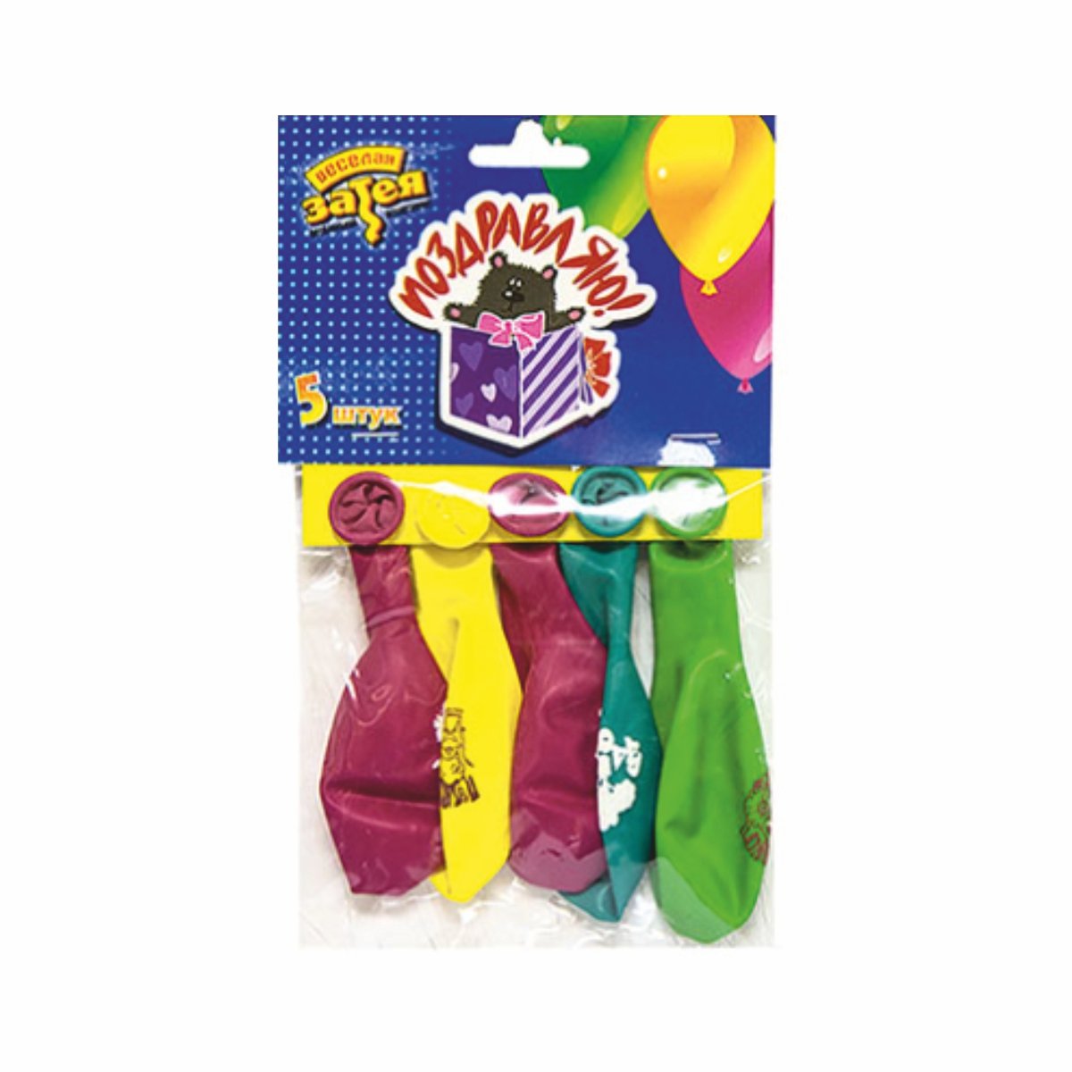 *Набор шаров Веселая Затея с рисунком Поздравления 30см, 5шт