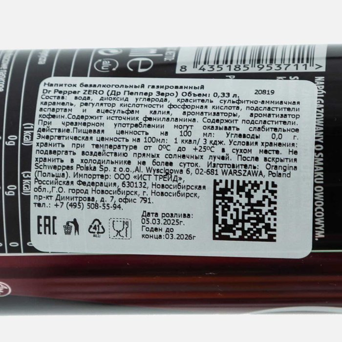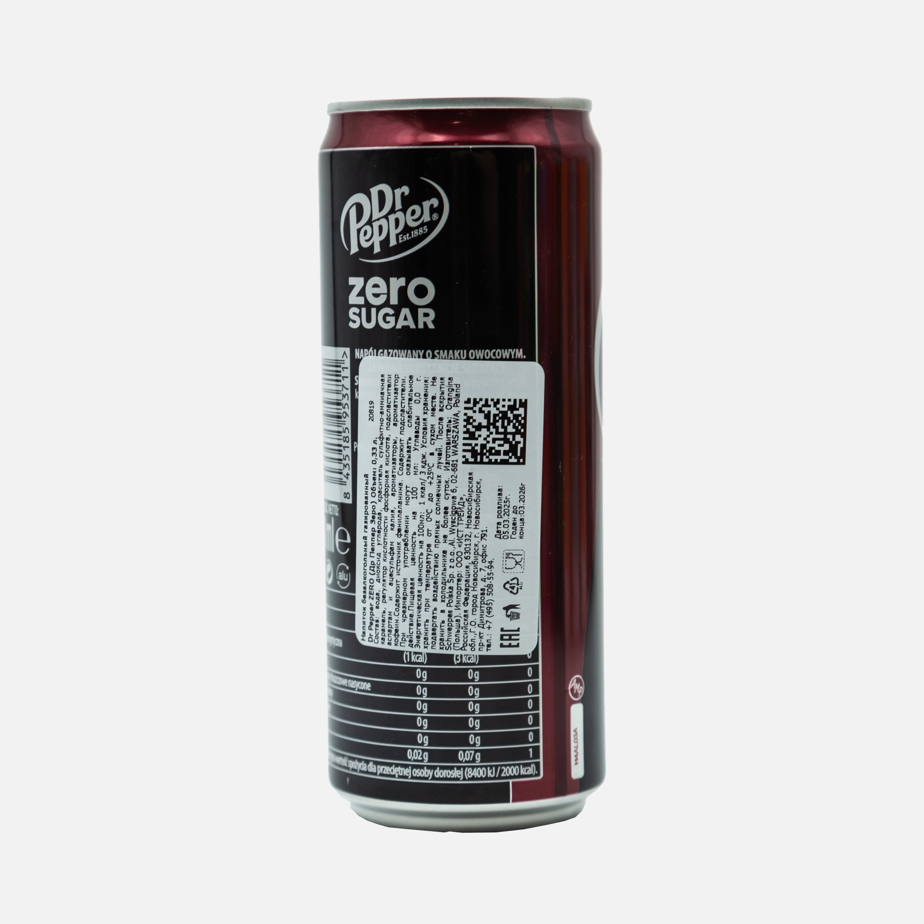 Напиток Доктор Пеппер Зеро газ ж/б 0,33л