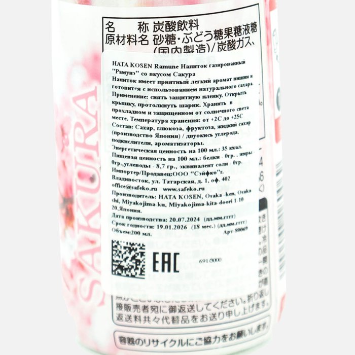 Напиток Хата Косен Рамунэ Сакура газ ст/б 200мл