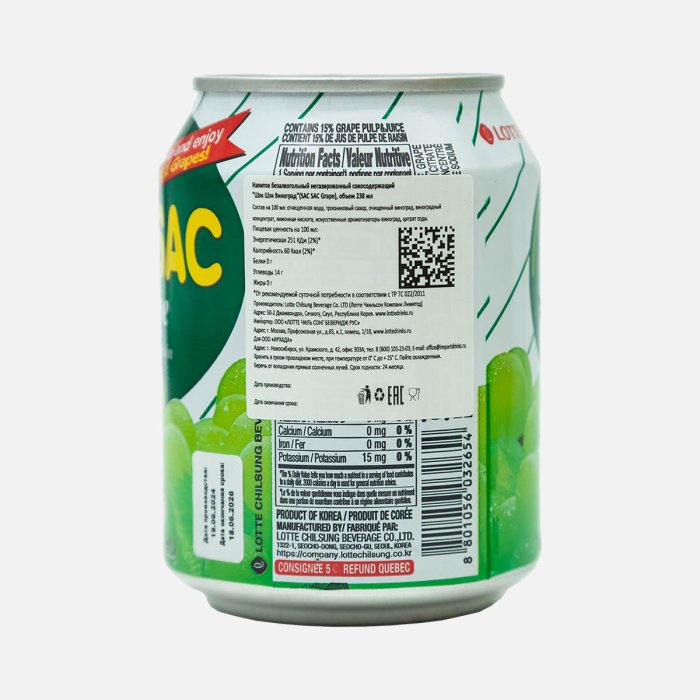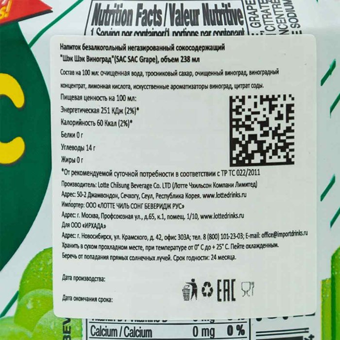 Напиток Лотте Шэк Шэк Виноград ж/б 238мл