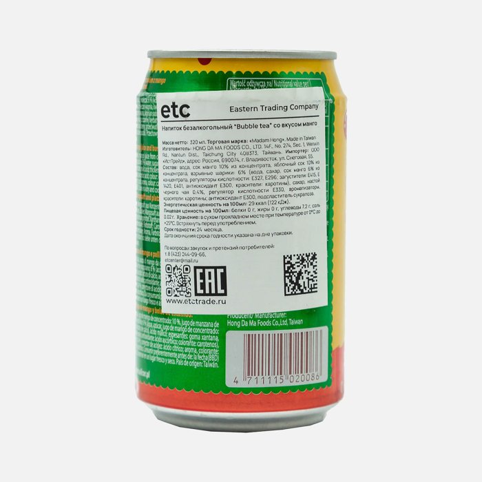Напиток Мадам Хонг Бабл Ти со вкусом манго 320мл