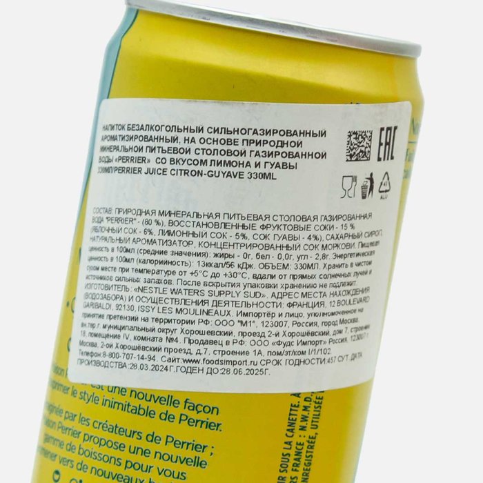 Напиток Перье на осн мин воды со вкус лимона/гуавы газ ж/б 0,33л