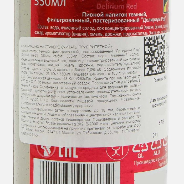 Напиток пивной Хюге Делириум Рэд темн фильтр паст 7% ст/б 0,33л