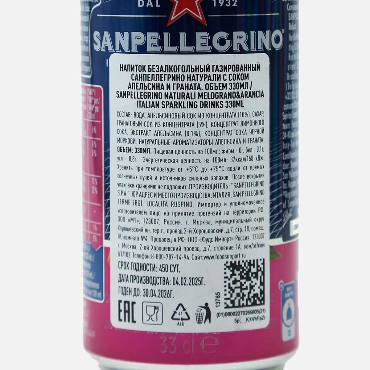 Напиток Санпеллегрино Натурали с соком апел/граната газ ж/б 0,33л
