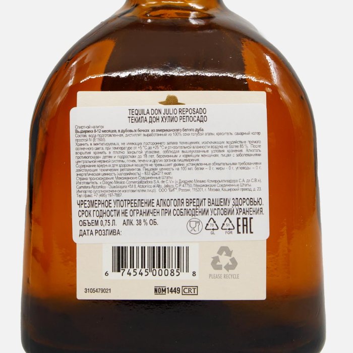 Напиток спиртной Текила Дон Хулио Репосадо 38% п/у 0,75л