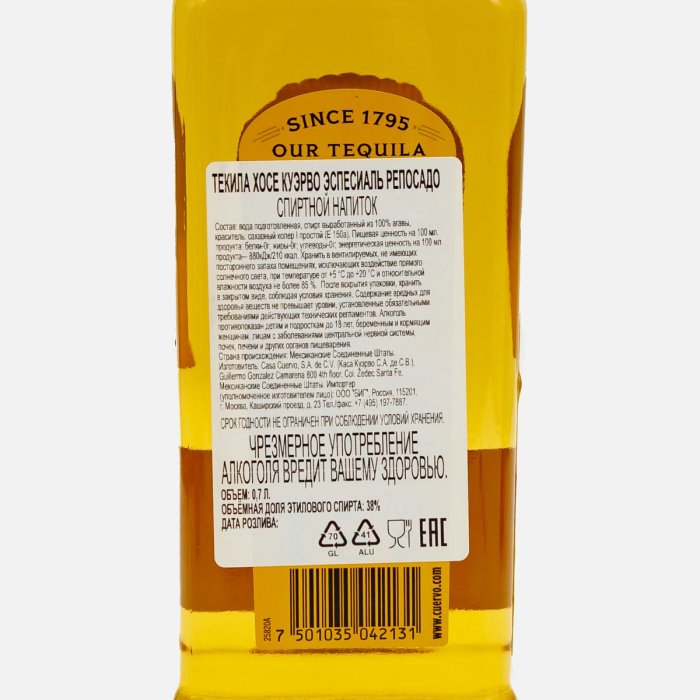 Напиток спиртной Текила Хосе Куэрво Эспесиаль Репосадо 38% ст/б 0,7л