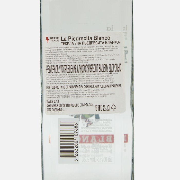 Напиток спиртной Текила Ла Пьедресита Бланко 38% ст/б 0,7л