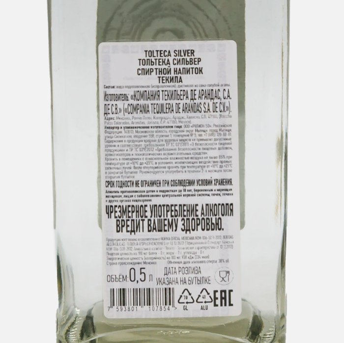 Напиток спиртной Текила Тольтека Сильвер 38% ст/б 0,5л