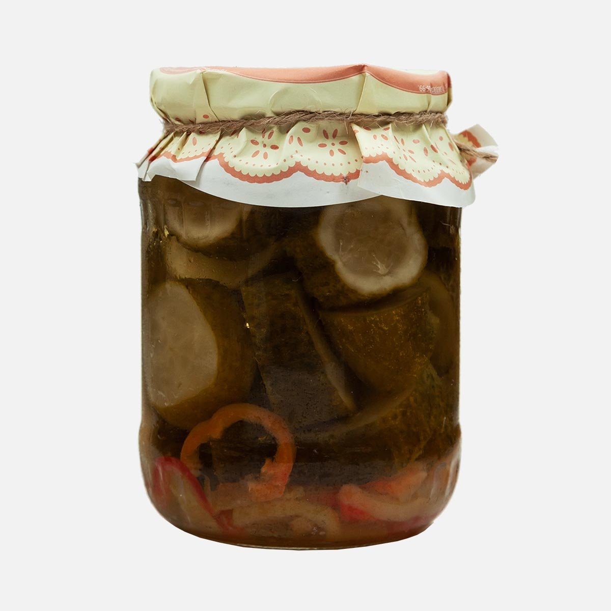 Мы маринуем огурчики по своему оригинальному рецепту с болгарским перцем, поэтому они такие вкусные и хрустящие. Подавайте с нашим картофелем, жареным с грибами.