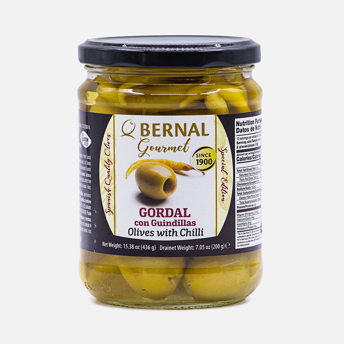 Оливки Берналь Гордаль Гурмэ фарширов острым перчиком 436г