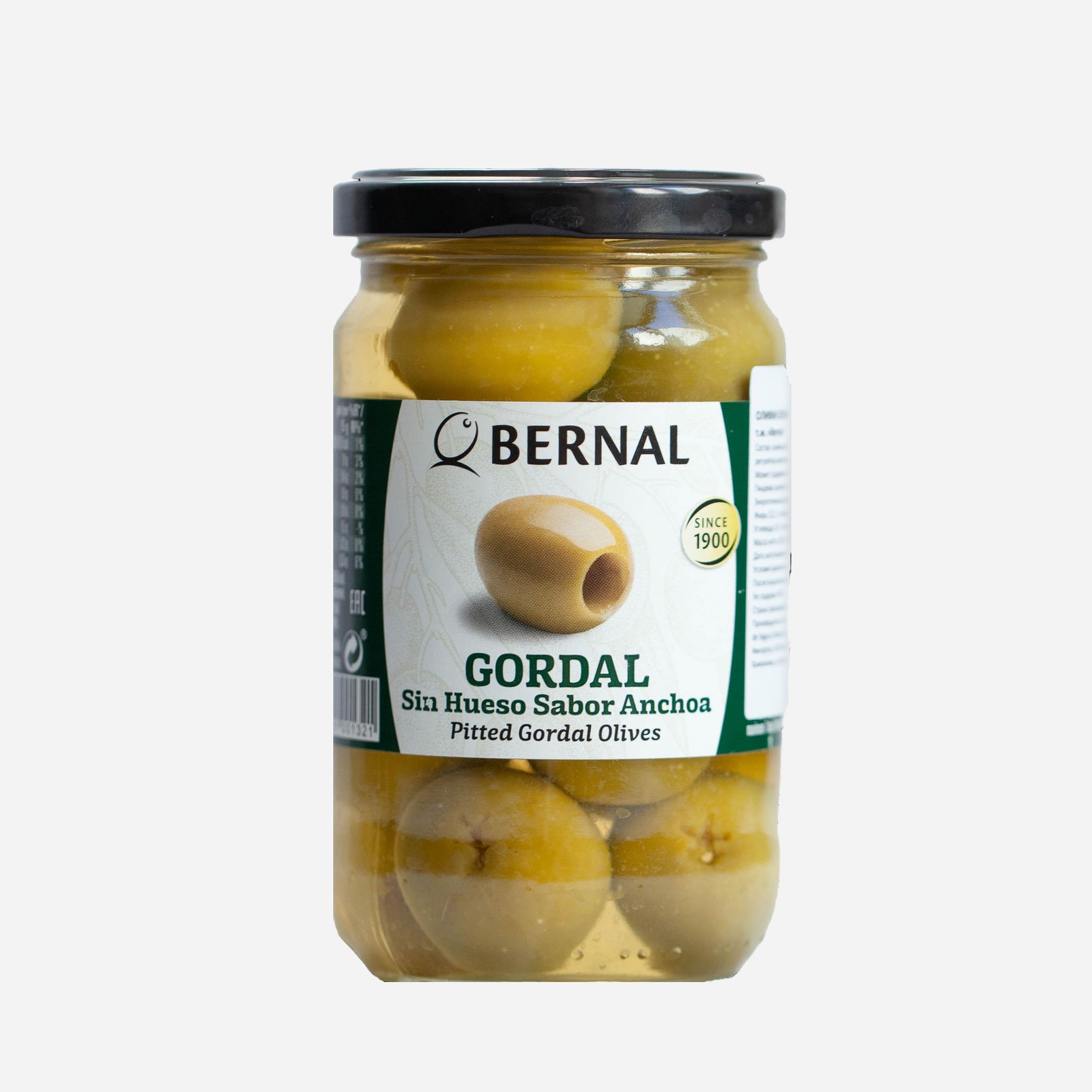 Оливки Берналь Гордаль зеленые с/к в анчоусном рассоле ст/б 300г