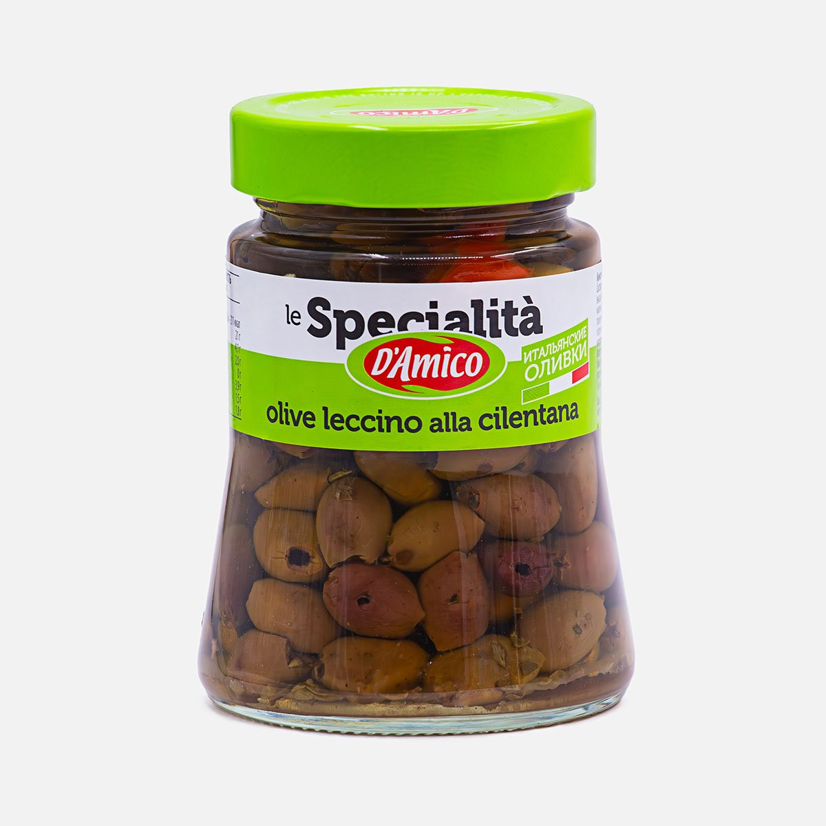 Оливки Д'Амико ЛеччиноАллаЧилентана б/к в масле со специями ст/б 270г
