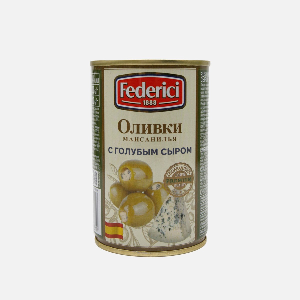 Оливки Федеричи с голубым сыром ж/б/кл 300г