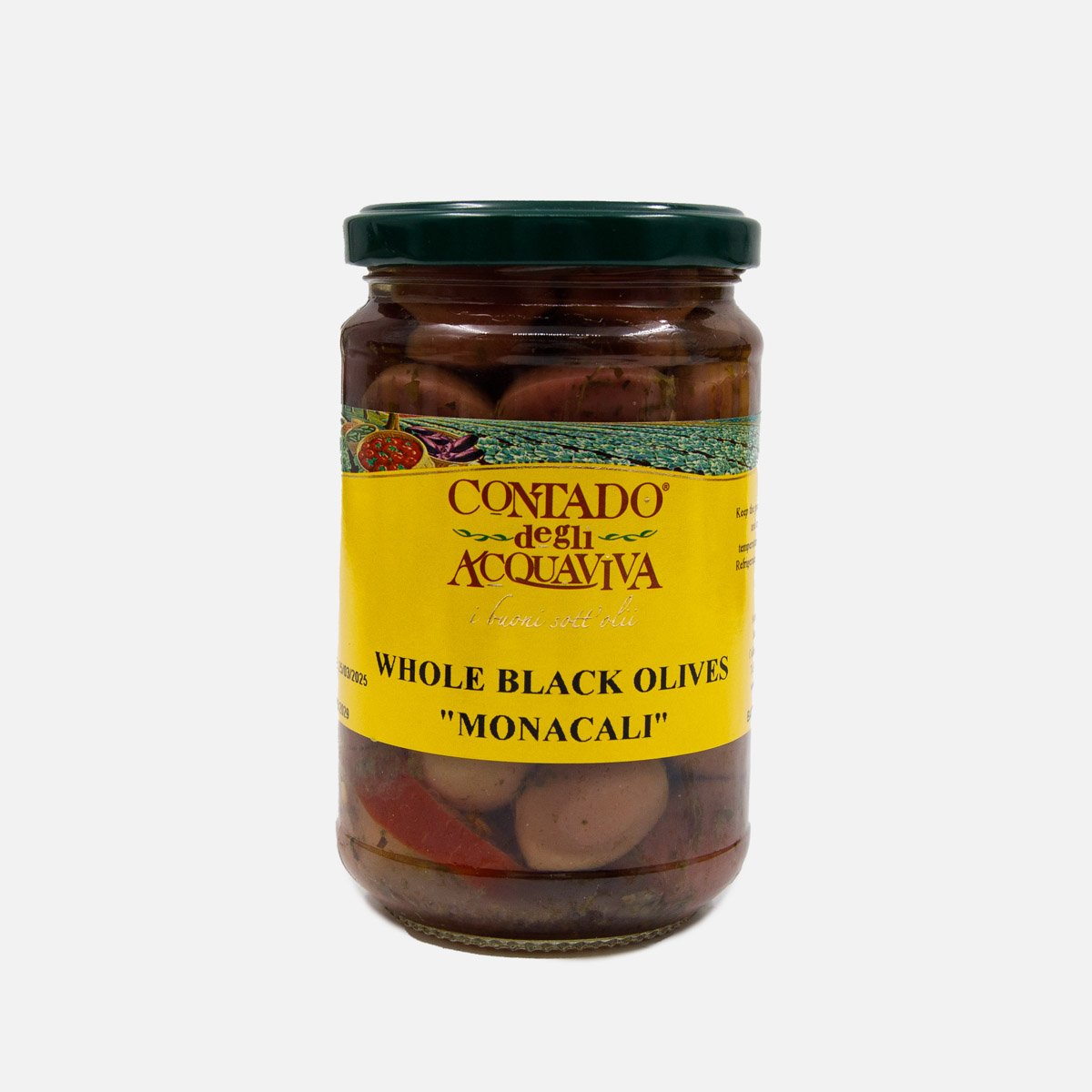 Оливки Контадо Дегли Аквавива Монакаль Стайл черные целые 300г