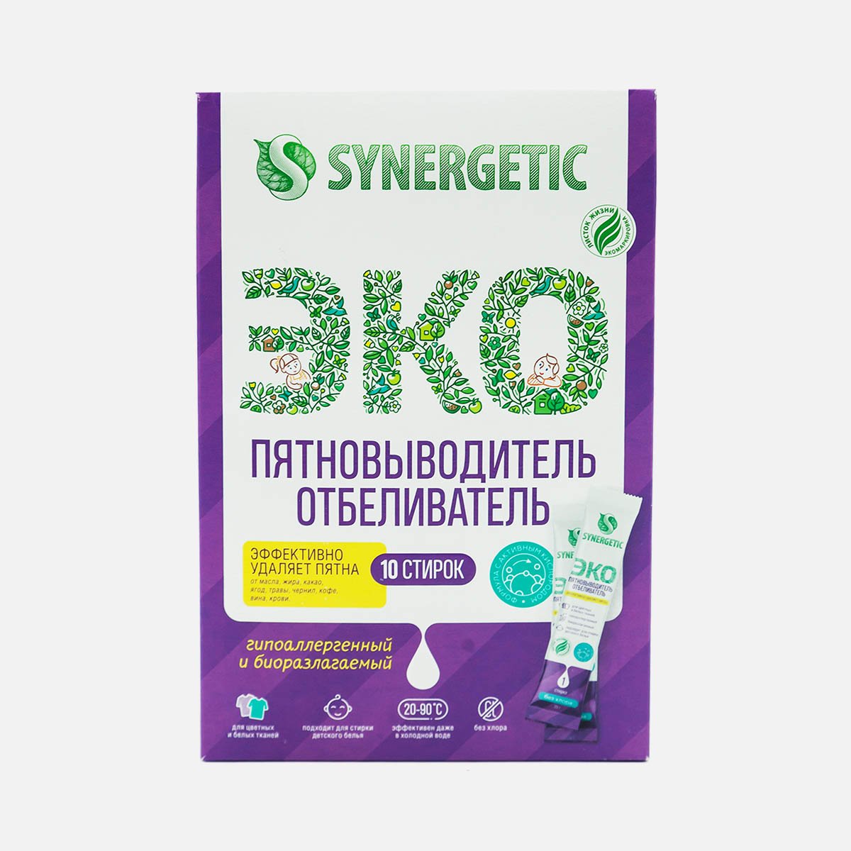Отбеливатель-пятновывод Синергетик актив кислород 10стирок 10х25г 250г