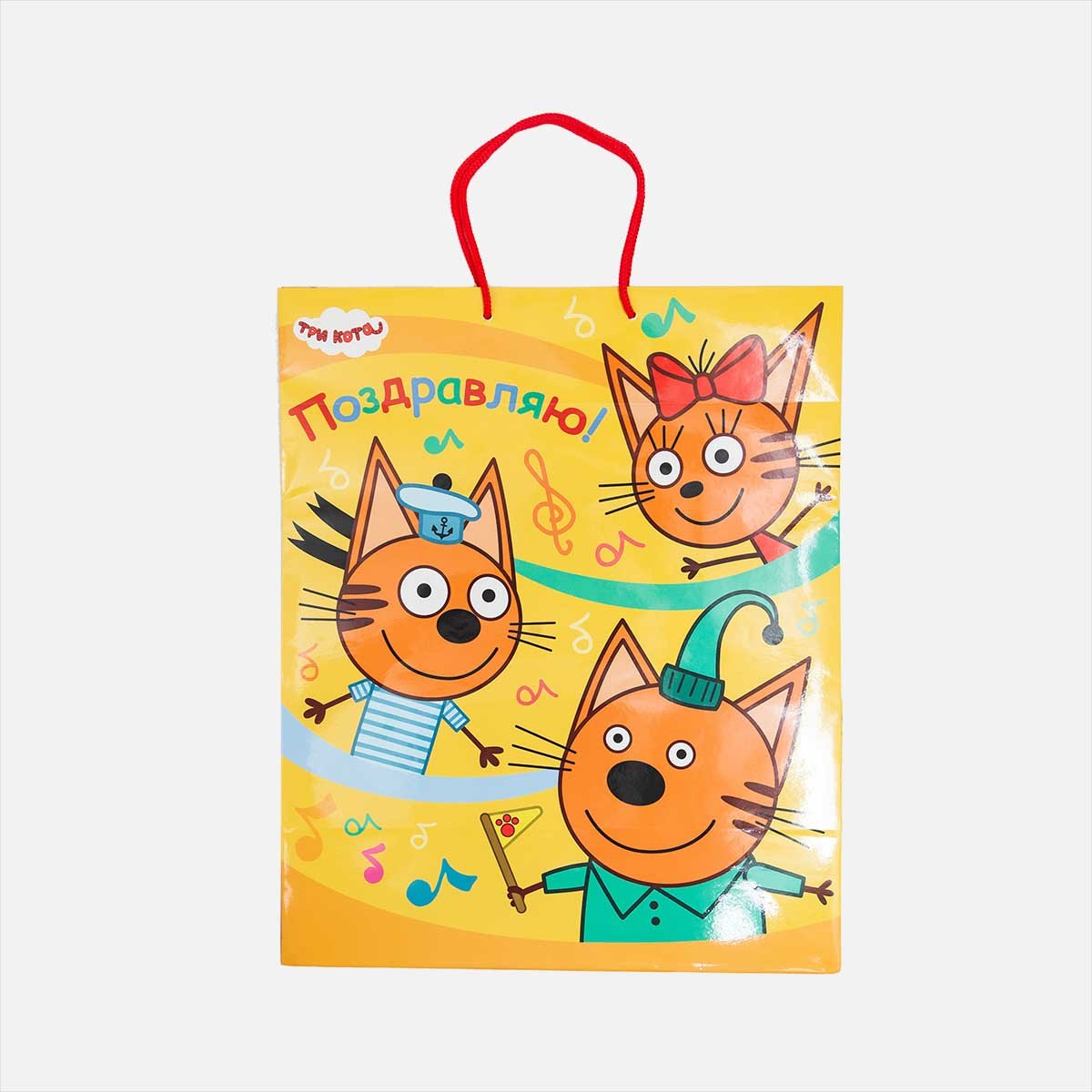 Пакет НД Плей подарочный большой Три кота желтый бум 315*380*155мм
