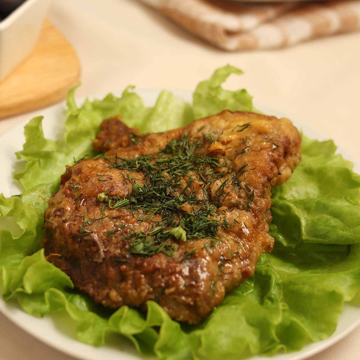 Печень говяжья с/м, яйцо куриное, мука пшеничная в/с , масло подсолнечное, соль поваренная пищевая, перец черный молотый.