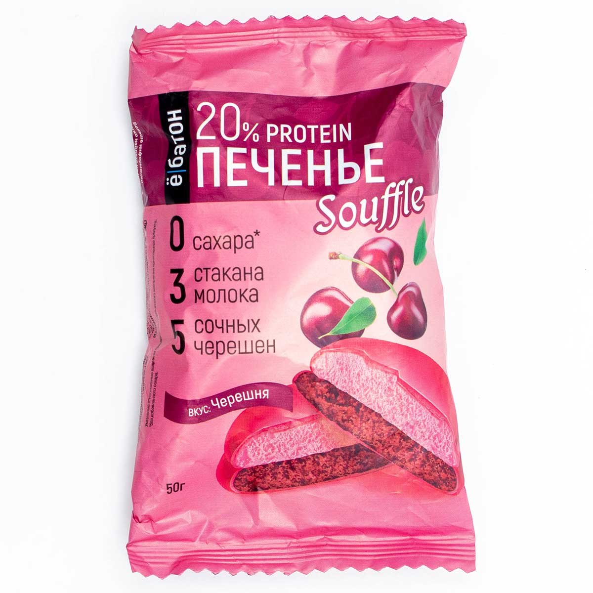 Печенье Ёбатон Черешня/суфле 20% протеина в ягодной глазури 50г