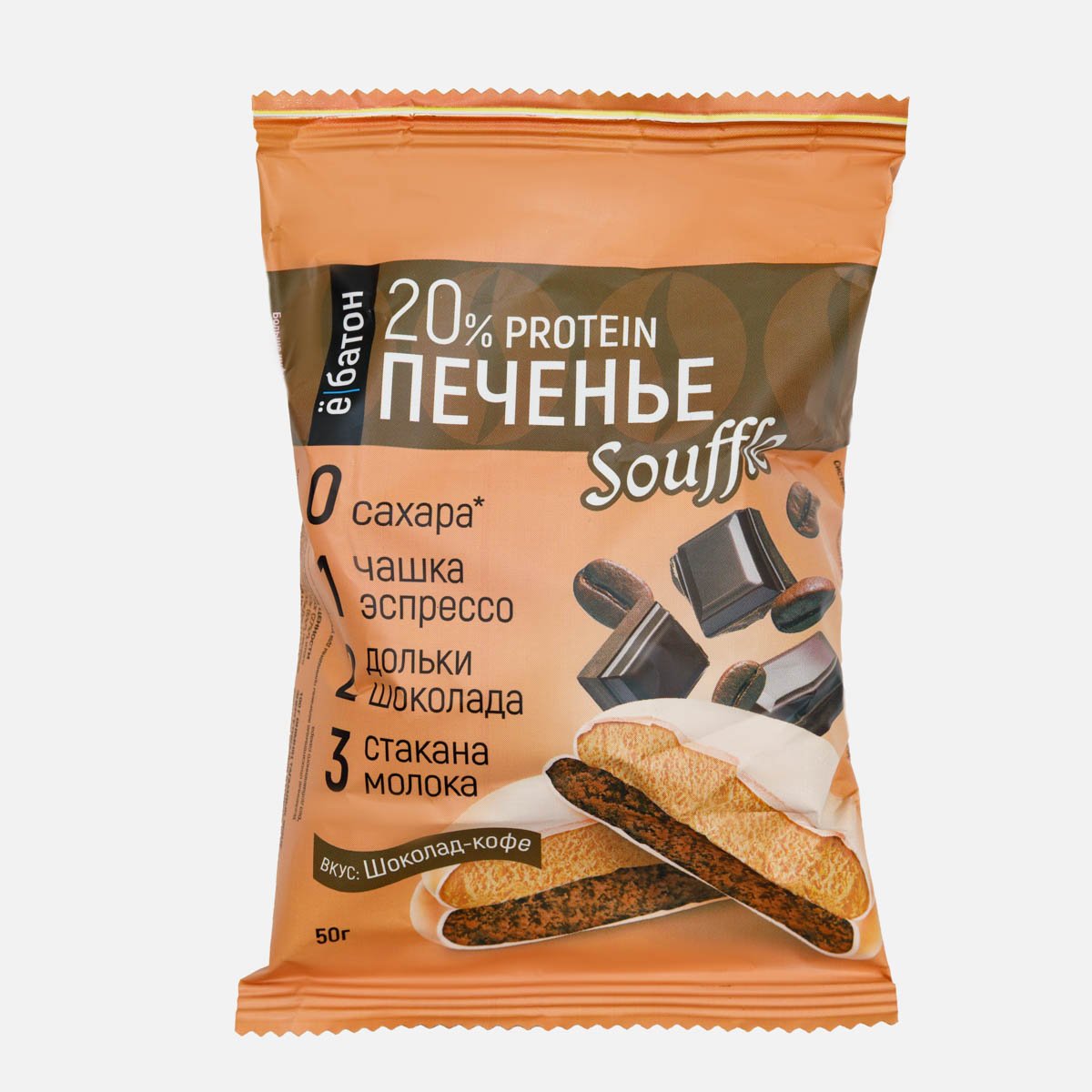 Печенье Ёбатон Шоколад-кофе/суфле 20% протеина в белой глазури 50г