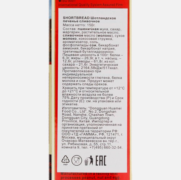 Печенье Хуамей Шотбрэд Шотландское сливочное 150г