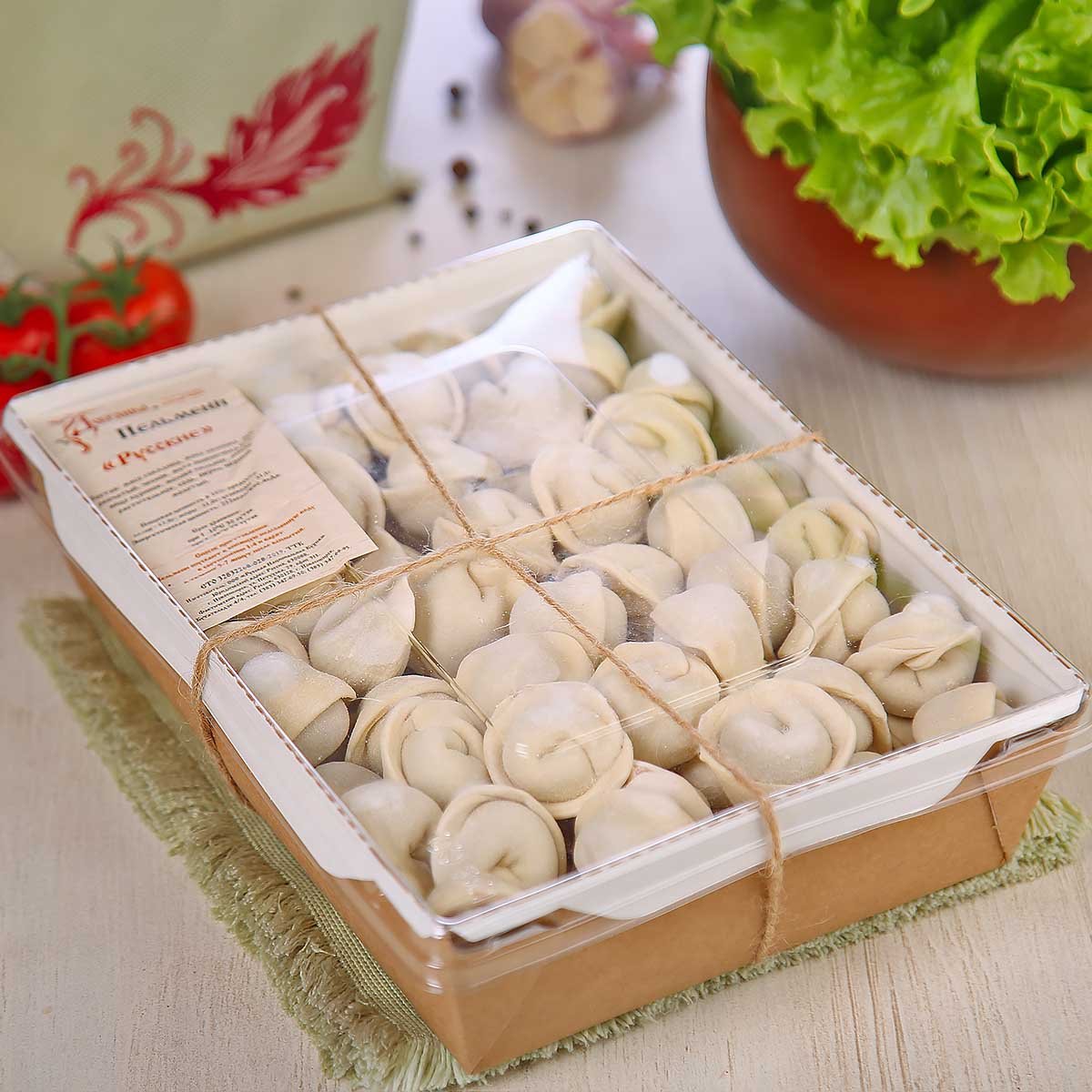 Тесто: мука пшеничная в/с, вода питьевая, яйца куриные, масло подсолнечное, соль поваренная. Фарш: мясо говядина, мясо свинина, лук репчатый, соль, перец ч/м. Категории А