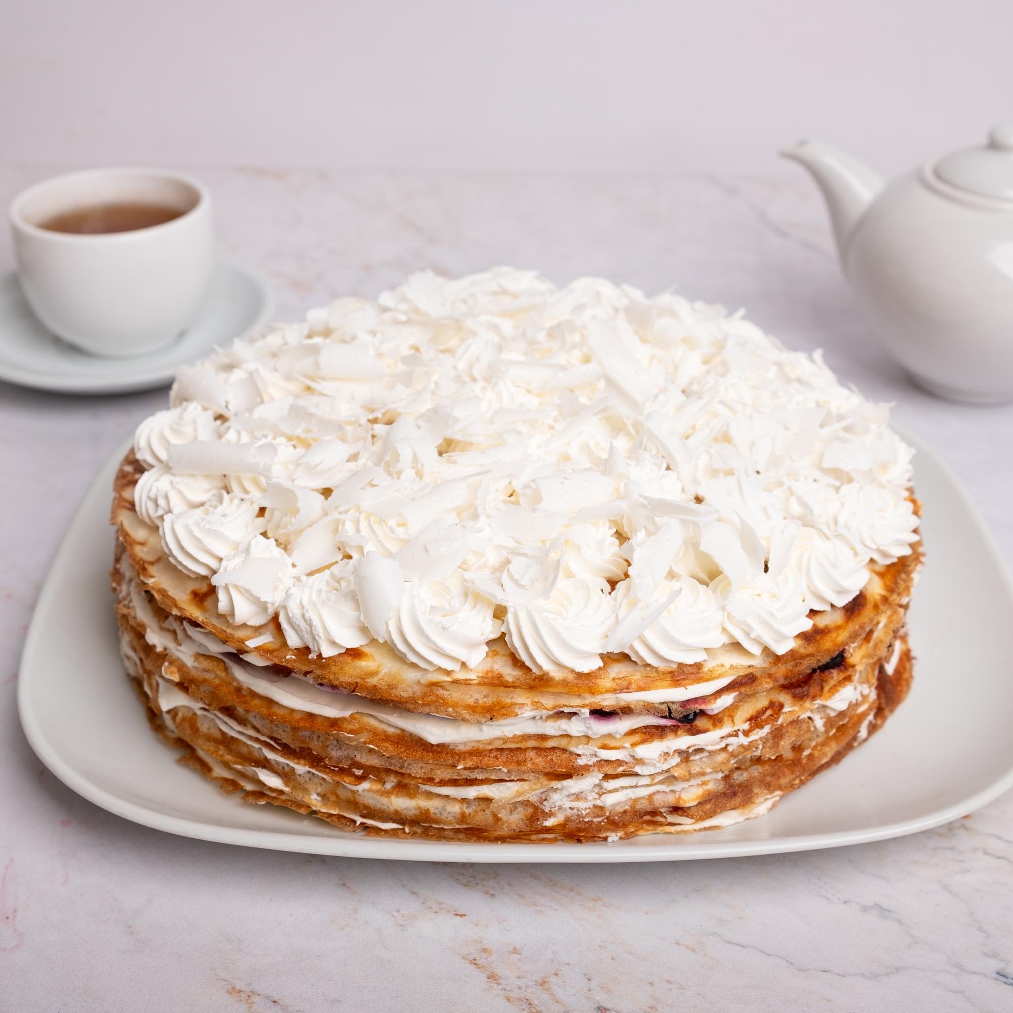 Мука пшеничная в/с, молоко цельное, яйцо куриное, черника с/м, сливки растительные, сыр творожный, сахар, сахарная пудра, масло растительное, покрытие шоколадное белое, глазурь шоколадная белая, соль, загуститель, амаретто
