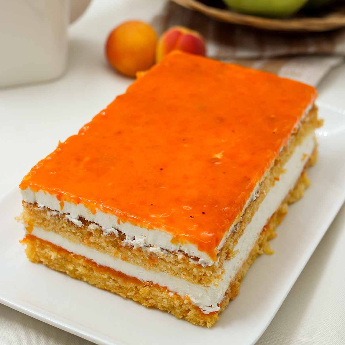Курага, морковь, мука пшеничная в/с, сметана, масло сливочное, яйцо куриное, сливки раститительные, сахар-песок, пудра сахарная, масло подсолнечное, гель Кристалин, разрыхлитель, загуститель.