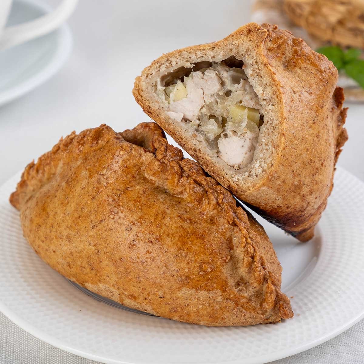 Для приготовления теста мы использовали цельнозерновую муку и овсяные хлопья. Начинку сделали из нежной диетической индейки и картофеля. Для сочности добавили репчатого лука. Попробуйте!