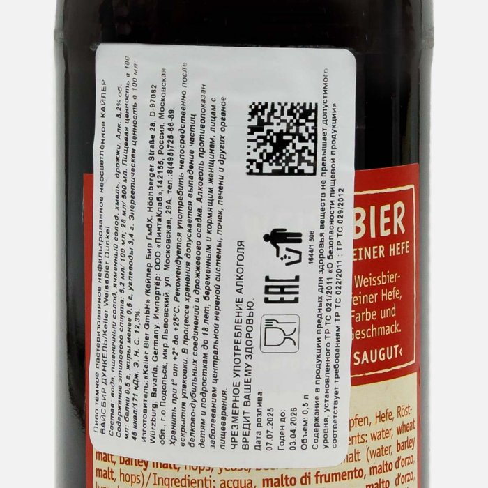 Пиво Кайлер Вайсбир Дункель темн нефильтр паст 5.2% ст/б 0,5л