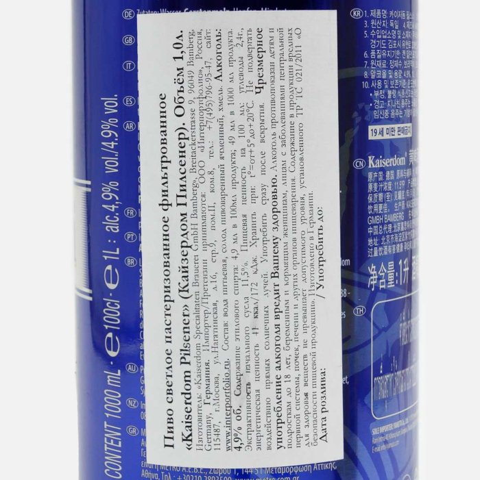 Пиво Кайзердом Пилснер св фильтр паст 4.7-4.9% ж/б 1л